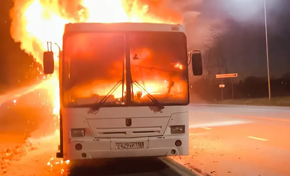 В окрестностях Нижнекамска в результате пожара полностью сгорел автобус