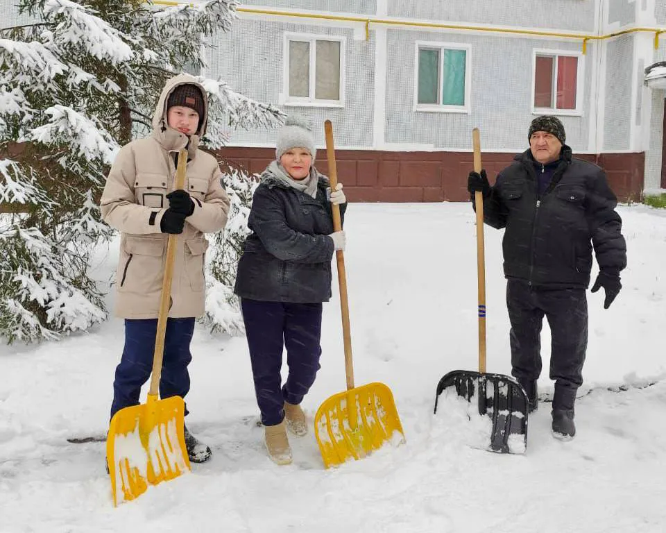 Сообща они освободили от снежного покрова пешеходные зоны, тротуары и входы в подъезды, сделав территорию вокруг дома более ухоженной, безопасной и комфортной.