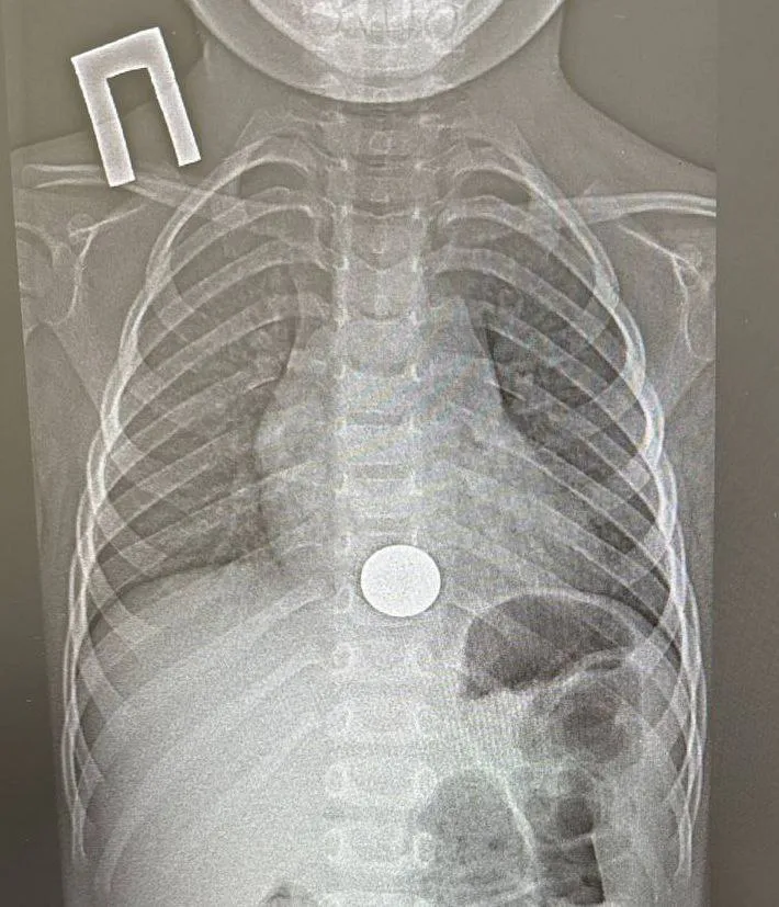 Инцидент произошёл 15 декабря. Малыш взял монету у старшего брата, случайно проглотил её и сразу рассказал об этом родителям. Мать незамедлительно доставила ребёнка в больницу. Рентген подтвердил: инородное тело застряло в пищеводе.