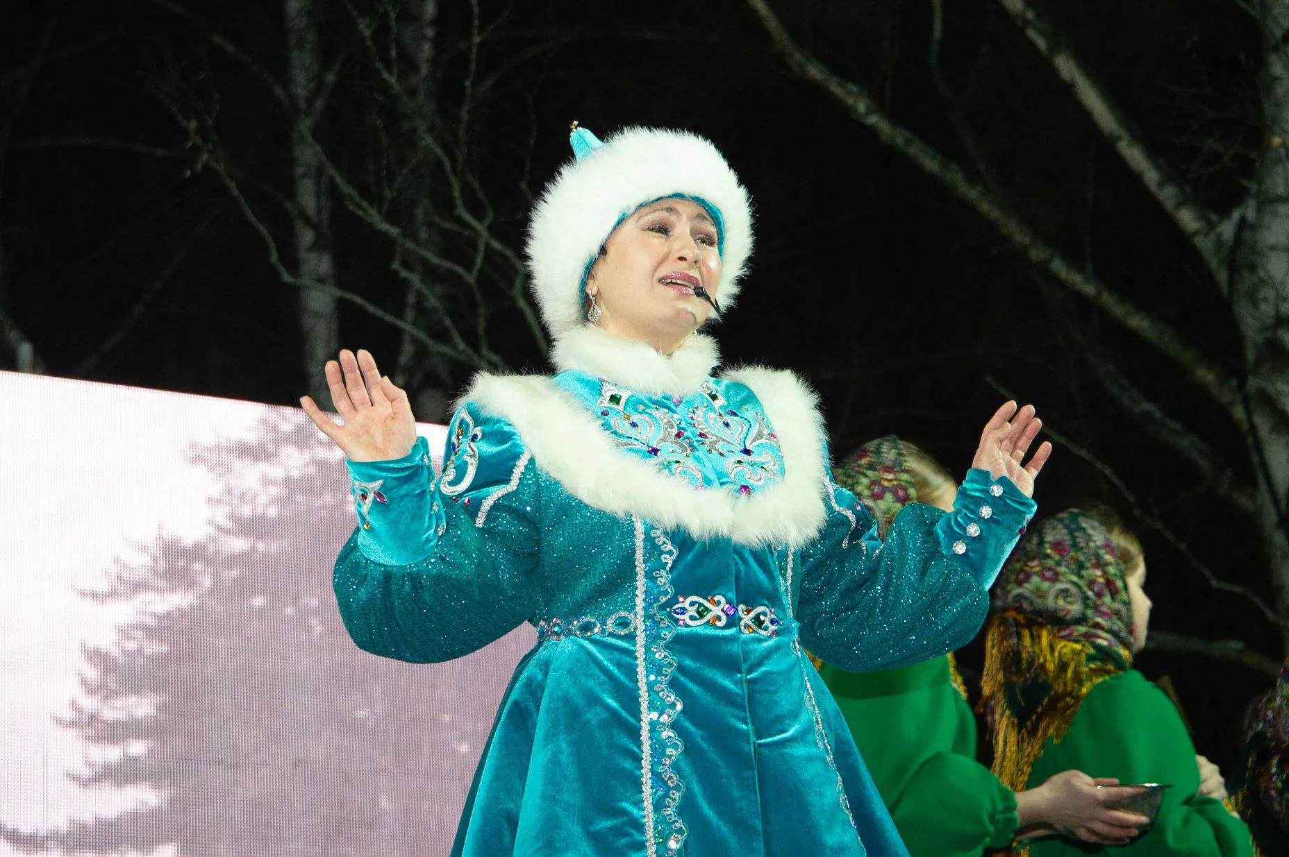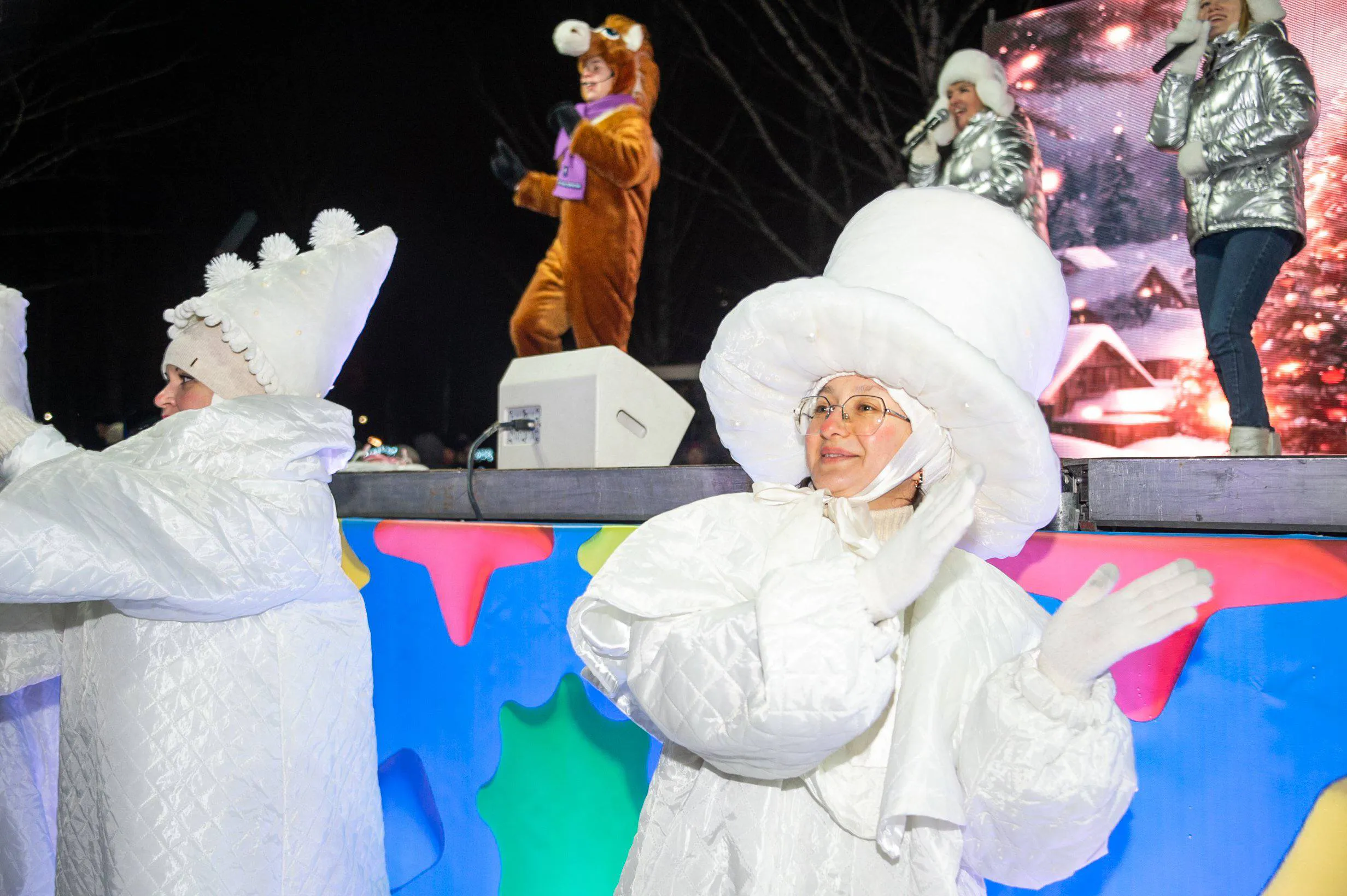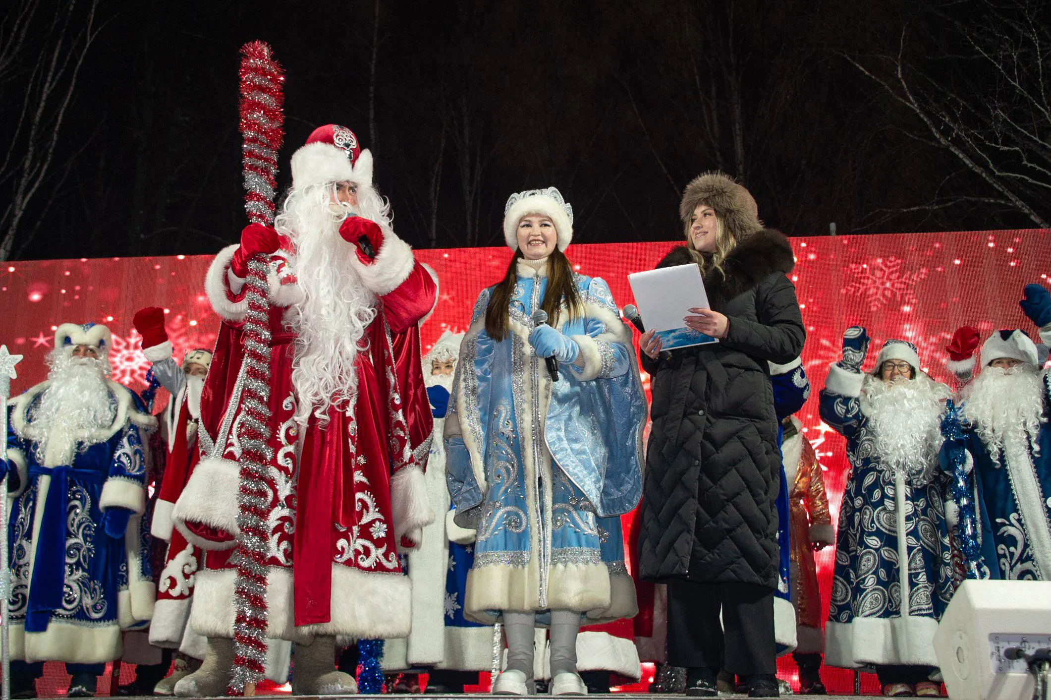 Праздник начался в семь часов вечера с театрализованного представления «Новогоднее сказание о славном Тулпаре». Затем на сцену поднялся мэр Нижнекамска Радмир Беляев. Он поздравил жителей с наступающими праздниками и вместе с главным Дедом Морозом дал команду — зажёг разноцветные огни на пушистой красавице-ёлке.