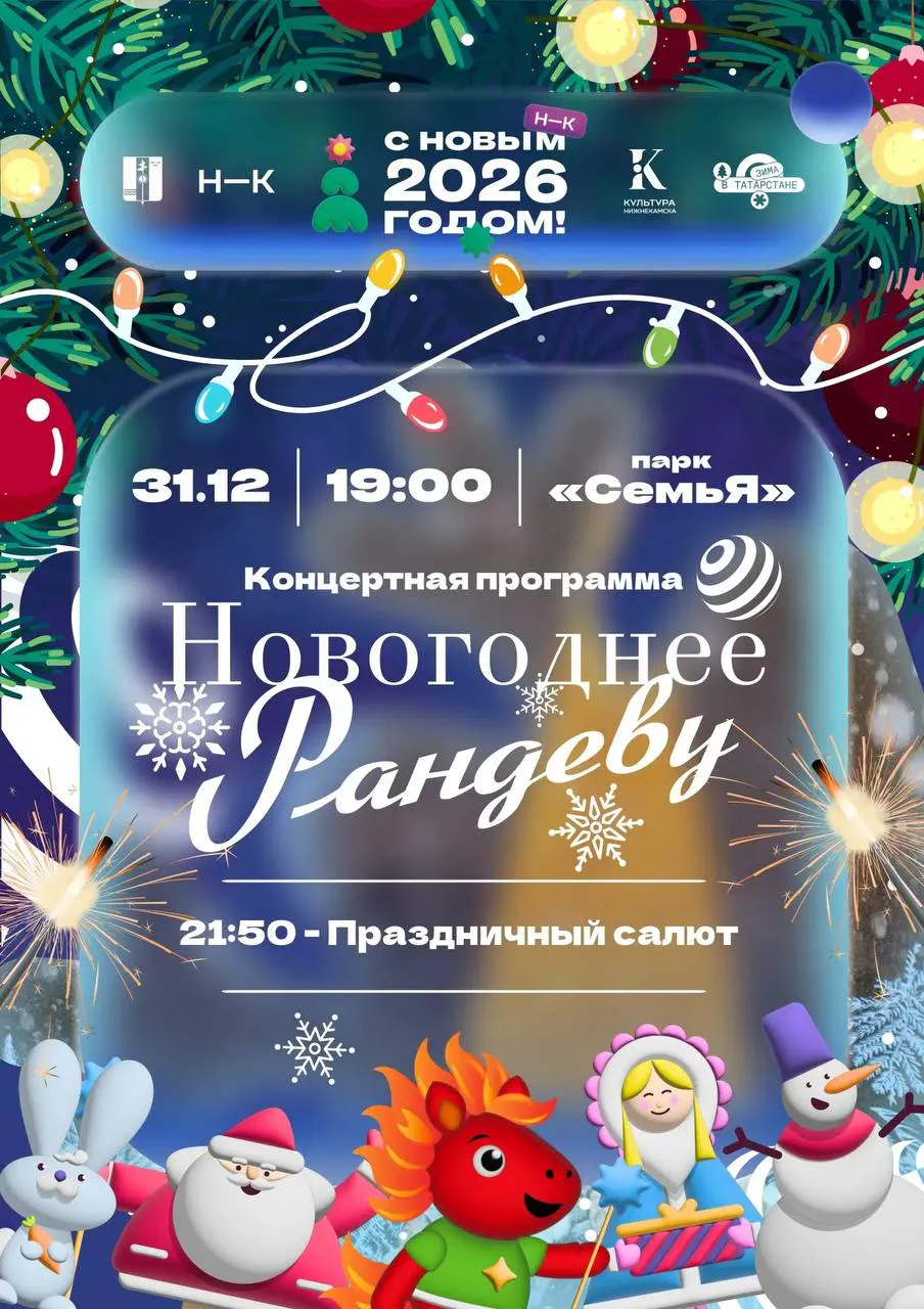Вечер 31 декабря начнётся с большого концерта под названием «Новогоднее рандеву». На сцену выйдут лучшие творческие коллективы города. Их выступления обещают стать настоящим калейдоскопом из зажигательных номеров, положительных эмоций и тёплых улыбок.