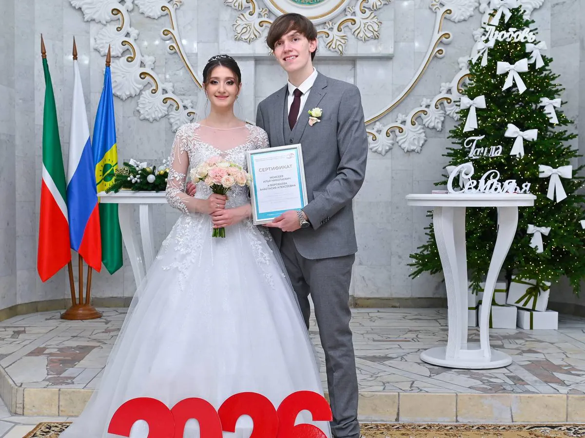 Свою семейную жизнь молодожёны начали в особенный для города год — Нижнекамск в 2026-м отмечает своё 60-летие. Их свадьба открыла новый сезон бракосочетаний в городе.