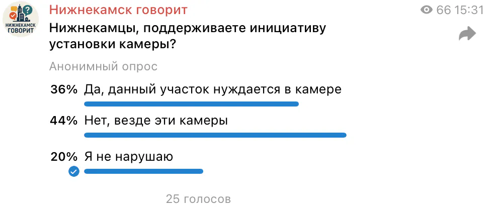 Нижнекамцы не поддержали инициативу, согласно опросу в телеграм-канале «Нижнекамск говорит»:
