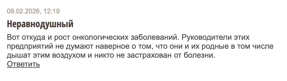 Читатель под ником «неравнодушный» увидел в объемах выбросов причину роста онкозаболеваний: