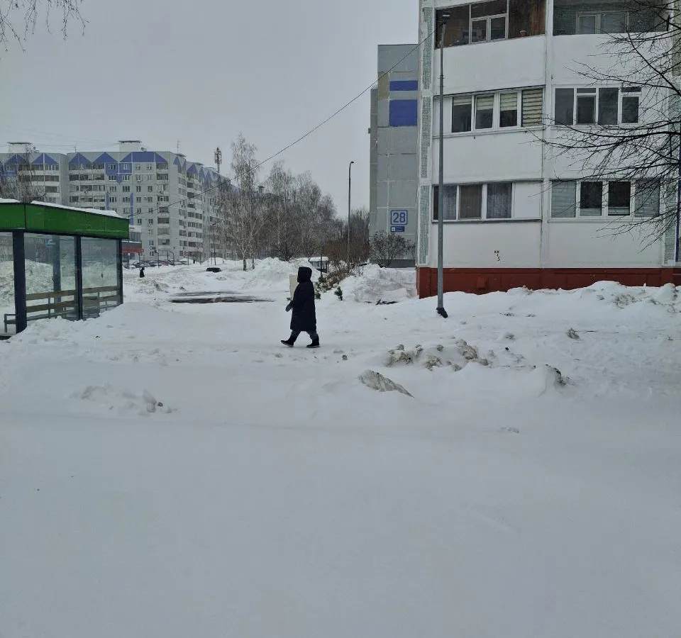 Женщина, которая, по её словам, объехала почти весь Нижнекамск, заявляет, что техники на улицах не видно. Тротуары, по её наблюдениям, не чищены нигде. На улице Сююмбике от 26‑го дома в сторону 6‑го люди ходят «собачьими тропами» — там не было уборки больше недели.