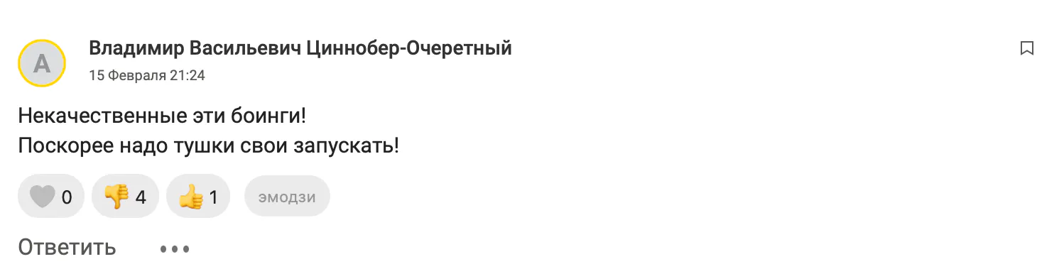 Читатели начали хаять боинги. Кто-то сравнил лобовое стекло самолета с «лобовухой» китайской машины:
