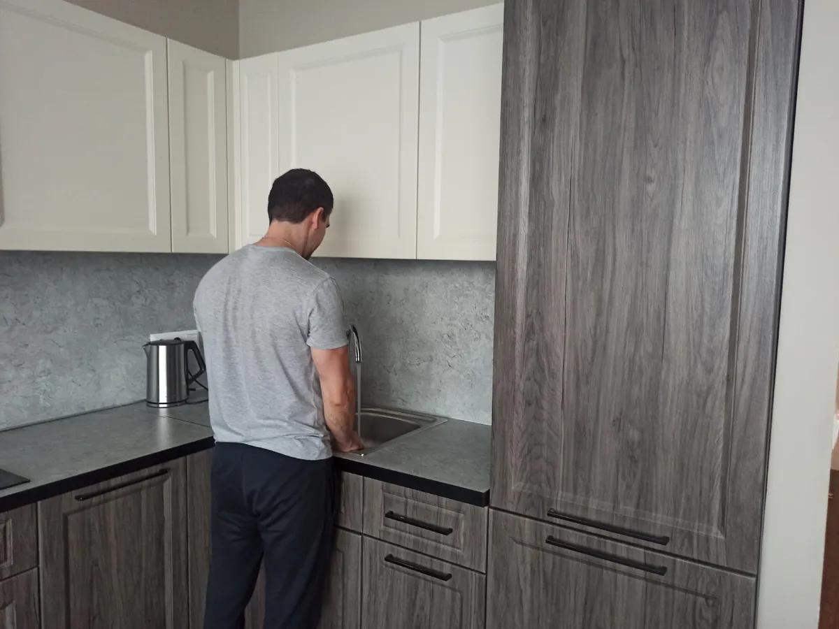 В доме № 14 на улице Вокзальной собственница расширила квартиру за счет стены между комнатой и коридором — ее частично убрали. Кладовку присоединили к кухне.
