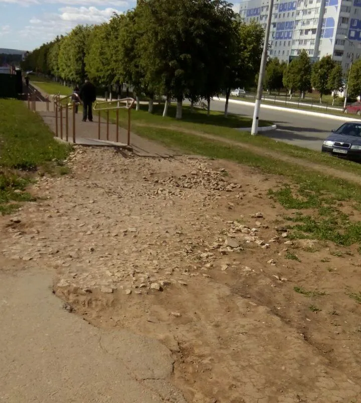 «Возле здания НХТИ со стороны «Эссена» вот так заканчивается «Безбарьерный Нижнекамск», очень оживленный участок дороги. Вчера за полчаса пока там гуляла, прошли человек 50: и мамочки с колясками, велосипедисты, человек на инвалидной коляске, но всем пришлось по обочине объезжать эту ужасную яму», – написала нам нижнекамка.