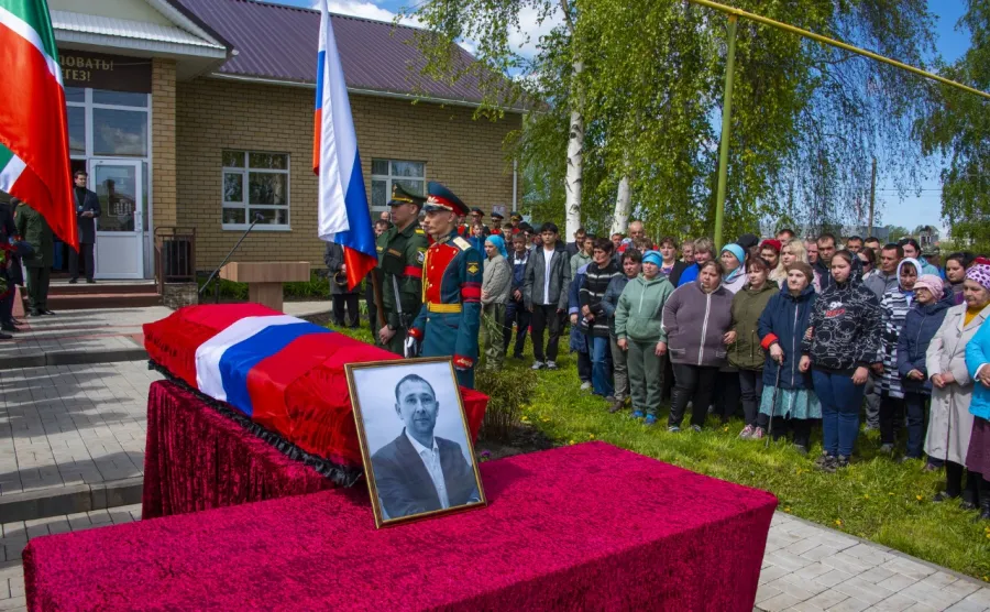 Нижнекамцы простились со старшим сержантом Равилем Рамазановым, погибшим во время спецоперации в Украине. Равиль Рамазанов уроженец г. Ташкумыр Ошской области Республики Кыргыстан. Обычный парень, выпускник Верхнеуратьминской общеобразовательной школы, получил специальность автомеханика, окончив профлицей 53. В 2003-05 годах проходил службу в рядах вооруженных сил России. В трудный, ответственный период для всей страны он, работник АО «Нижнекамский механический завод» шинного комплекса, встал на защиту жизни простых людей, участвуя в спецоперации в Украине добровольцем. Торжественная церемония прощания с солдатом состоялась на площади у Дома культуры села Верхняя Уратьма. Проводить Равиля Рамазанова приехали руководитель Исполнительного комитета НМР Рамиль Муллин, заместитель министра промышленности и торговли РТ Родион Карпов, представители воинской части 45863, в которой проходил службу солдат, родные, близкие, коллеги, односельчане. После минуты молчания участники митинга возложили цветы к портрету героя. Затем траурная процессия под звуки оркестра двинулась на кладбище Верхней Уратьмы. Три громких залпа, произведенных в честь Равиля Рамазанова, стали последним салютом для героя.Источник - официальный сайт Нижнекамского муниципального района.
