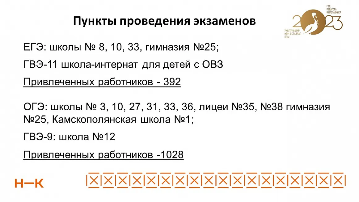 Как пишет пресс-служба города, о том, как пройдут итоговые экзамены на «деловом понедельнике» рассказал начальник Управления образования по НМР Айдар Гарифуллин.Традиционно, экзамены будут проводиться на базе пунктов проведения. В этом году открыт дополнительный пункт на базе лицея №38 для девятых классов. ЕГЭ будет проводиться в 4 пунктах, ОГЭ – в 10. Кроме этого, для детей с ограниченными возможностями здоровья организованы пункты в школе-интернате (для 11-х классов) и школе №12 (для 9-х классов).Продолжи