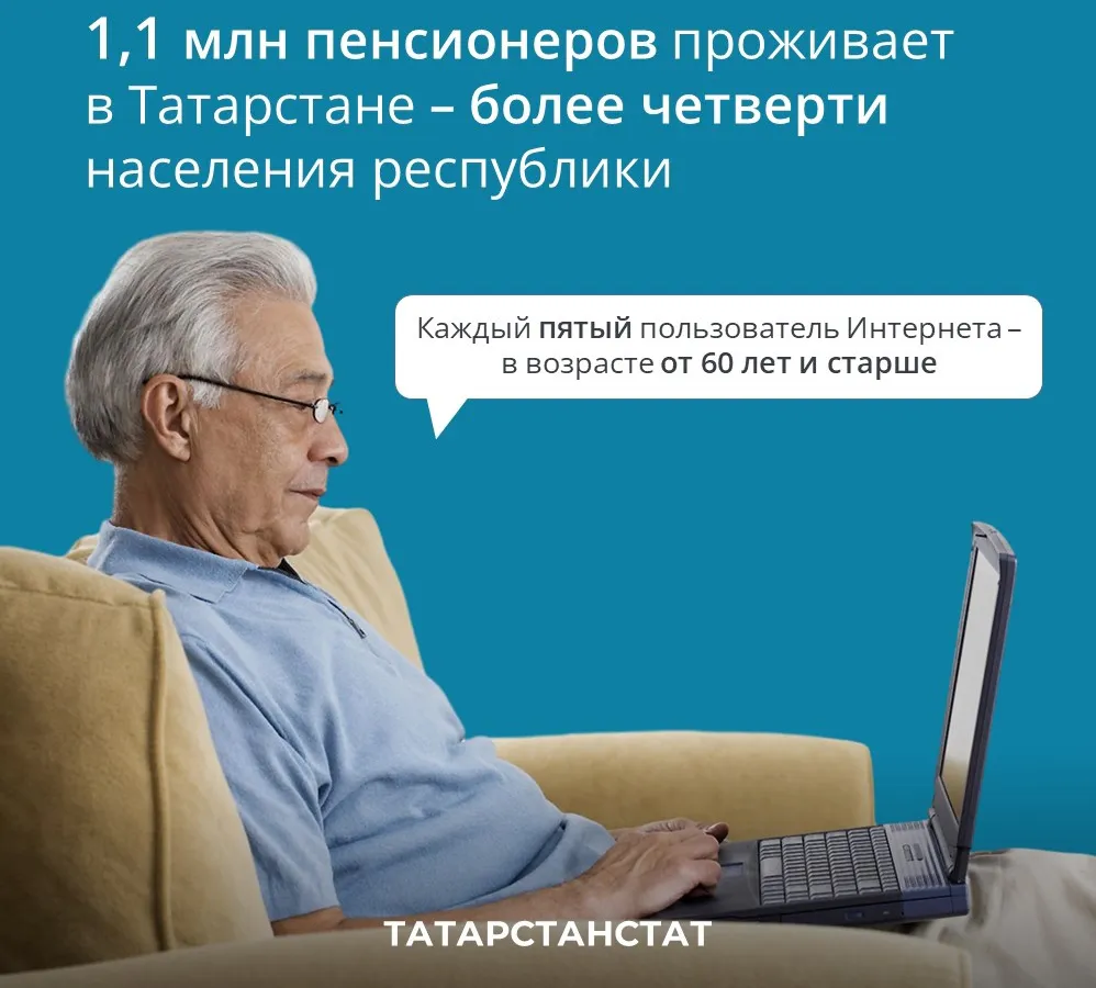 В Татарстане отметили Международный день пожилого человека!Этот день – свидетельство мудрости, опыта и стойкости старшего поколения, которое сформировало последующие поколения и продолжает вдохновлять нас каждый день.В Татарстане численность пенсионеров на 1 июля 2023 года составляет более 1,1 млн человек – это каждый четвертый человек в республике. А ещё, старшее поколение является самыми активными пользователями Интернета. В Татарстане каждый пятый пользователь в сети в возрасте от 60 лет и старше.Источни