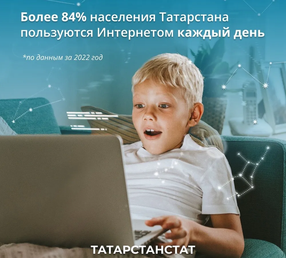 Ни для кого не секрет, что мы живем в эпоху цифрового развития, а с момента появления Интернета наша жизнь изменилась – современную жизнь невозможно представить без доступа к “Всемирной паутине”. Так, в 2022 году 94% жителей Татарстана имели доступ в Интернет, 84% выходили в сеть почти каждый день. Чаще всего Интернетом пользуются с целью телефонных звонков и видео-разговоров через мессенджеры – 90% населения, просмотра новостей и информации о погоде – 66%, поиска информации о товарах и услугах – 60%. Ровно