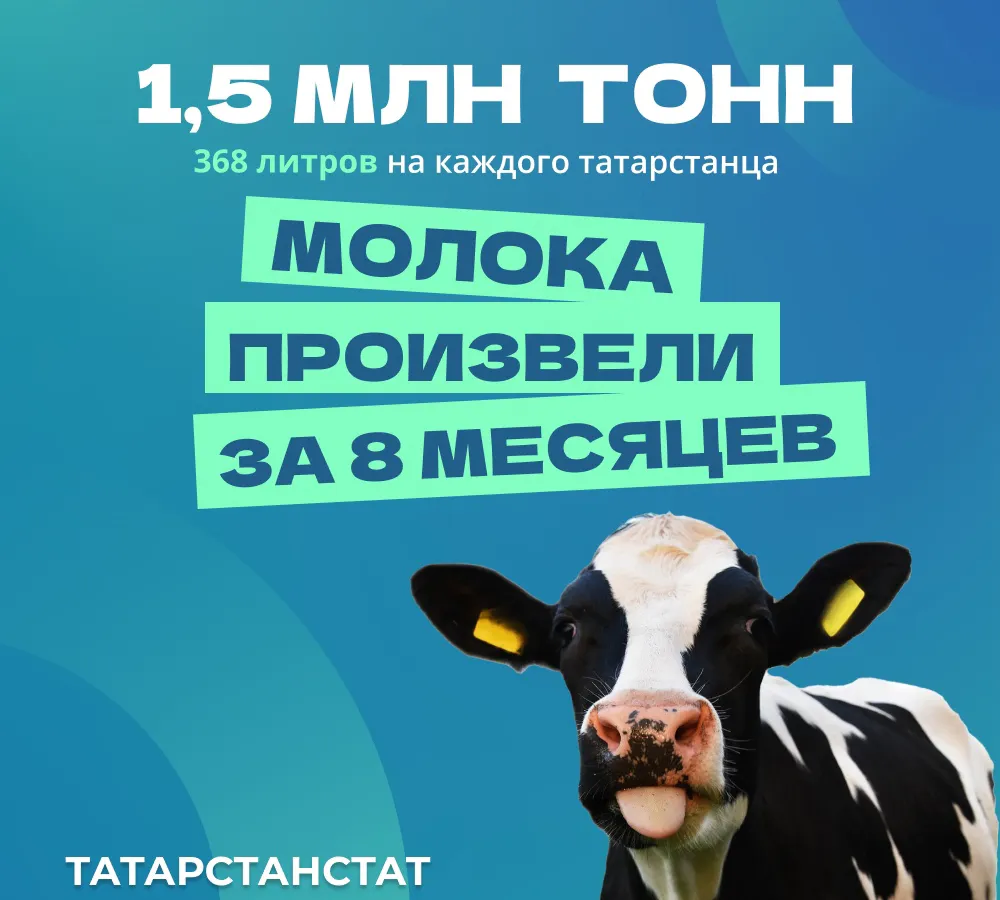 В 2022-м Татарстан занял 1-е место по производству молока