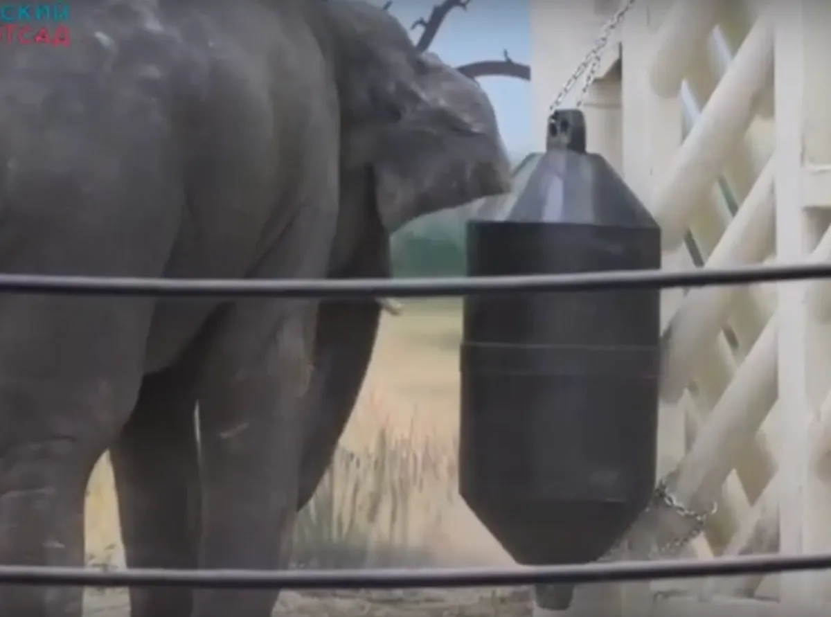 «Тебе с левой, с правой или с хобота?». Новый постоялец Казанского зооботсада слон Филимон вовсю отрабатывает приёмы на специальной игрушке.