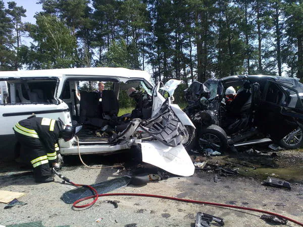 Столкнулись микроавтобус «Citroen» и автомобиль «Hyundai ix35». В результате ДТП погибли восемь человек (из них двое скончались в машине «скорой помощи», один в больнице).
