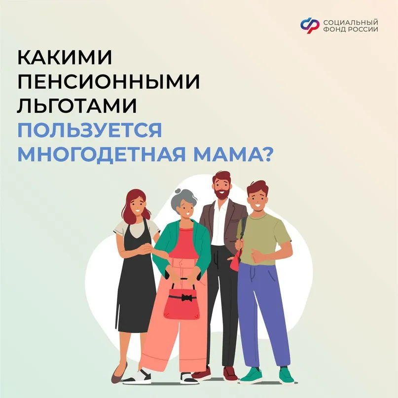 В Социальном фонде России рассказали, что многодетные мамы с 3 или более детьми могут выйти на пенсию раньше срока. Для этого всем детям должно быть более 8 лет, а стаж женщины не менее 15 лет.Оформить пенсию они могут:- в 57 лет, если родили и воспитали 3 детей- в 56 лет — 4 детей- в 50 лет — 5 и более детей При этом мамы двух и более детей, которые имеют страховой стаж не менее 20 лет и проработали не менее 12 календарных лет в районах Крайнего Севера или не менее 17 лет в приравненных к ним местностях также могут уйти на отдых в 50 лет.Время ухода за детьми до их 1,5 лет включается в мамин стаж:В общей сложности при формировании пенсии можно учесть до шести лет — то есть максимум четыре таких периода.За полный календарный год устанавливаются пенсионные коэффициенты:- уход за первым ребенком — 1,8- за вторым — 3,6- третьим или четвертым ребенком — 5,4Если мама в период ухода за детьми продолжала трудиться, то по наиболее выгодному для нее варианту можно учесть коэффициенты за периоды работы или коэффициенты за периоды ухода.