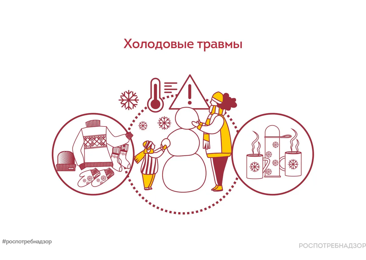 Это состояние, возникающее при продолжительном воздействии низких температур на организм. С ростом минусовой температуры возрастает риск получения обморожения и переохлаждения.Для предотвращения возникновения холодовой травмы Роспотребнадзор рекомендует принимать следующие меры:1. Одежда должна быть теплой и защищать от ветра. Надевайте шапку, шарф, перчатки и теплую обувь.2. Делайте перерывы, чтобы прогреться в помещении.3. Горячие чай, кофе или суп помогают сохранить тепло в организме. Воздействие высокой