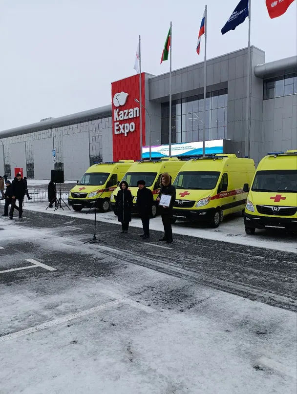Как сообщили в медучреждении, на итоговой коллегии Министерства здравоохранения РТ в "Казань Экспо" Нижнекамской ЦРМБ вручили сертификаты на два автомобиля скорой медицинской помощи.Автопарк НЦРМБ пополнили Sollers Atlant и ГАЗель Next. Торжественная церемония вручения состоялась на площадке перед выставочным центром. В мероприятии приняли участие Раис Татарстана Рустам Минниханов, помощница министра здравоохранения Российской Федерации Оксана Гусева, министр здравоохранения Республики Татарстан Марсель Миннуллин.На сегодняшний день в автопарке скорой медицинской помощи насчитывается 26 желто-белых автомобилей. Все они готовы круглосуточно доставлять врачей и фельдшеров к пациентам Нижнекамска и Нижнекамского района.