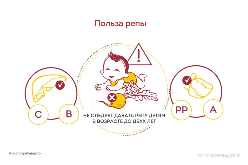Несмотря на свою непопулярность, репа является полезным и питательным овощем, источником важных для человека веществ, который:- содержит витамины группы В, С, РР, провитамин А, полисахариды, стерины, фолиевую кислоту, антиоксиданты;- позволяет поддерживать здоровый вес за счет высокого содержания клетчатки;- полезен для сердца – снижает кровяное давление и предотвращает чрезмерное образование тромбоцитов;- улучшает работу печени и активизирует выделение желчи, что препятствует образованию желчных камней и способствует снижению уровня холестерина;- содержит лизоцим – вещество с очень сильной антимикробной активностью.А вы знали, что ботва репы – ценный источник витамина К? В 100 г содержится 186% от рекомендованной суточной нормы. Витамин К важен для укрепления костей и предотвращает развитие болезни Альцгеймера.Сок репы используют при кашле, болях в горле и при восстановлении «севшего» голоса.Роспотребнадзор напоминает, что следует ограничить употребление репы при склонности к аллергическим реакциям, повышенной чувствительности желудка, осложненных формах диабета и при других противопоказаниях. Также не следует давать репу детям в возрасте до двух лет.Источник – Роспотребнадзор РФ.