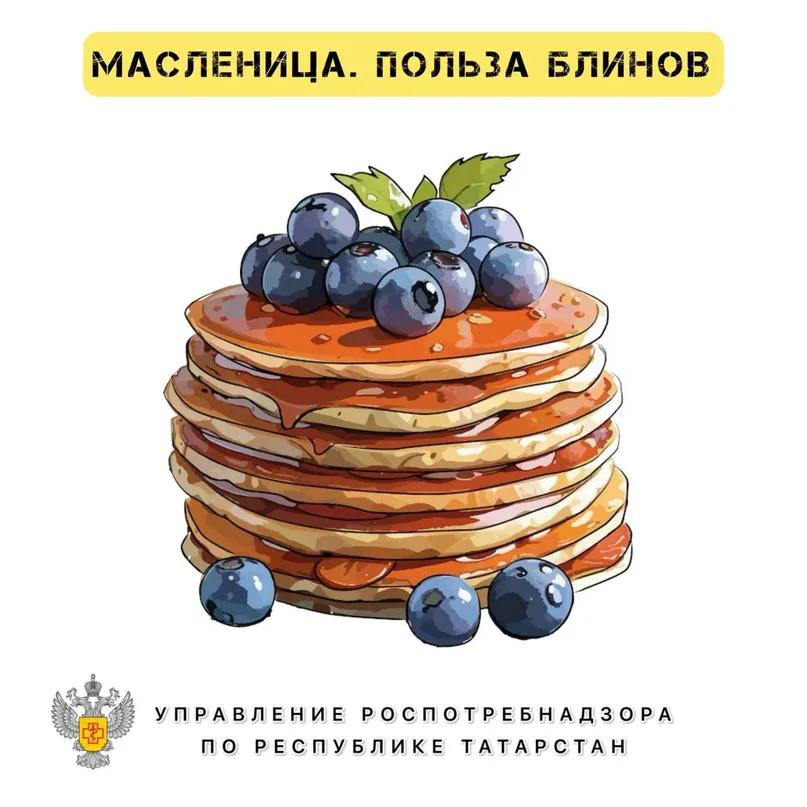 В этом году Масленица начинается 11 марта. Блины – калорийный продукт, богатый простыми углеводами. Поэтому данное блюдо не стоит рассматривать как десерт. Это полноценный и очень сытный прием пищи. Польза блинов:- Из-за того, что блины готовят из яиц и молока, в блюдо входит высокое содержание легкоусвояемого животного белка.- Желток, содержащийся в яйцах, имеет в своем составе жирорастворимые витамины, которые помогают в работе клеточной мембраны, синтеза аминокислот в организме и поддерживают уровень метаболизма.- В пшеничной муке, из которой готовят блины, содержится клетчатка, которая оказывает положительное влияние на пищеварительную систему.Вред блинов:- Блины – достаточно калорийный продукт, и это главный минус. В одном блине — 115 ккал- Очень горячие блины плохо влияют на работу ЖКТ, поэтому лучше подождать, пока они остынут.- С осторожностью употреблять блины нужно людям, страдающим панкреатитом, холециститом или циррозом печени.- Специалисты не рекомендуют давать блины детям до трех лет. Вот несколько хитростей, которые помогут снизить калорийность блинов и повысить их полезные свойства:- Вместо белой пшеничной муки высшего сорта можно взять овсяную, ячменную, гречневую, ржаную, цельнозерновую или их смесь.- Используйте минимальное количество масла при выпекании блинов.- Хорошо делать блины на кефире, выбирайте продукт пониженной жирности.- Старайтесь уменьшить количество сахара в рецептуре.Помните, что любые калорийные блюда лучше есть в первой половине дня и знать меру.Источник – Роспотребнадзор РТ.