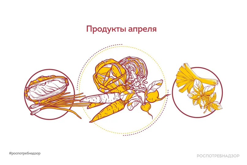 В апреле природа уже практически полностью просыпается ото сна. Но даже несмотря на это, нужно пересмотреть свой рацион питания и постараться уберечь организм от заболеваний, стрессов и весенних депрессий. Тут нам помогут сезонные продукты. Чтобы наполнить свой рацион микро- и макроэлементами, Роспотребнадзор рекомендует обратить внимание на следующие овощи: - молодая белокочанная и цветная капуста; - лук-порей; - морковь; - ревень; - редис и редька; - свекла; - листовой цикорий; - фенхель. Из фруктов отдай