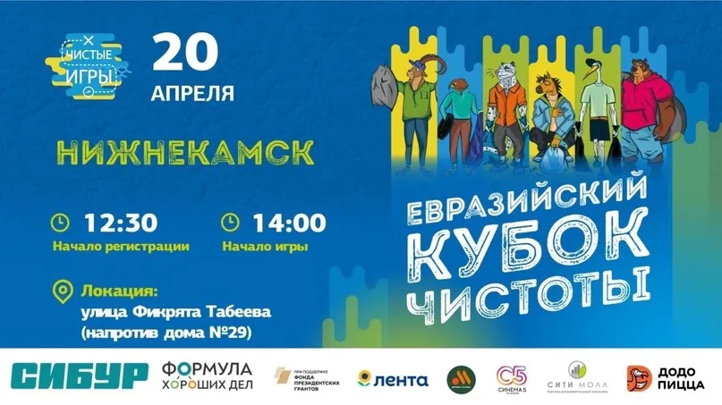Как сообщили в пресс-службе города, с 20 по 29 апреля во всей России и других странах СНГ пройдут эковолонтерские соревнования «Чистые Игры», объединенные в «Евразийский Кубок Чистоты». Всего турнир охватит около 180 игр, из которых 130 пройдут на территории России. В Нижнекамске соревнования пройдут на ул. Фикрята Табеева (напротив дома №29) по предварительной регистрации. Сбор участников запланирован на 12:30. Игра пройдет при поддержке программы социальных инвестиций СИБУРа «Формула хороших дел».Вы также можете принять участие в соревнованиях и помочь любимому городу в борьбе с мусором. Для этого зарегистрируйтесь по ссылке: https://forms.yandex.ru/cloud/6613f7cf84227c12b09401cf/.