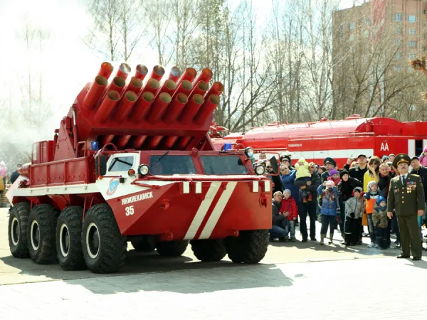 Мероприятие состоится 30 апреля. С 9 часов у Дома народного творчества начнётся показ боевой пожарной техники. Зрителям будет продемонстрировано порядка двух десятков машин, в их числе уникальный аэродромный автомобиль, обладающий повышенным запасом воды и пены, единственный в Татарстане пеноподъёмник ПП-48, предназначенный для тушения пожаров в стальных вертикальных резервуарах высотой до 48 метров и др.Также нижнекамцев ждут три залпа разноцветными шариками из БТРа – это особенно любят дети, и демонстраци