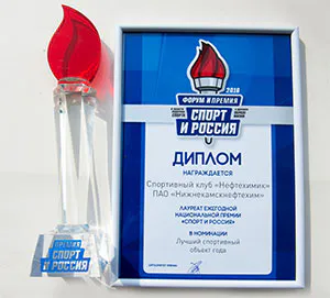 В Сочи состоялась церемония награждения лауреатов ежегодной национальной Премии «Спорт и Россия – 2016», вручаемой за наиболее значимые достижения, направленные на формирование интереса россиян к спорту и здоровому образу жизни. На торжественной церемонии были объявлены около 35 компаний-лауреатов в различных номинациях.По результатам экспертного голосования проект спортклуба «Нефтехимик» вошел в итоговый каталог «Спорт и Россия-2016» и был признан лауреатом программы в номинации «Лучший спортивный объект г