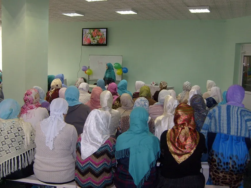 Это традиционные занятия для женщин, которые проходят здесь каждый месяц, где педагоги рассказывают об отношениях супругов, детях, родителях, женской красоте и уюте в доме, сообщает сайт НМР.