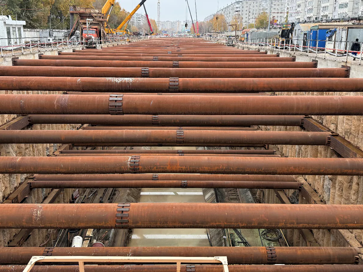 На станции «100‑летие ТАССР» приступили к строительству чернового лотка, установке ключевых железобетонных конструкций и гидроизоляции.