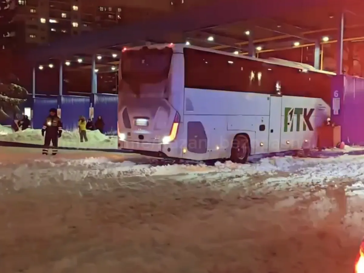 Их автобус, перевозивший 42 человека, полностью забуксовал в глубоком снегу и не мог самостоятельно продолжить путь.