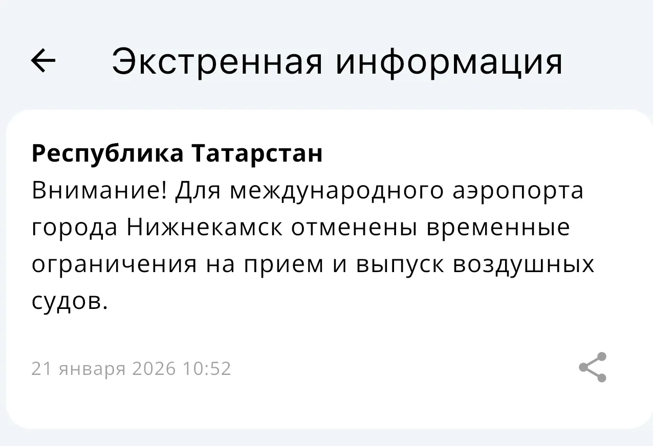 Режим «Беспилотная опасность» отменили в Татарстане спустя 3 часа: аэропорты работают