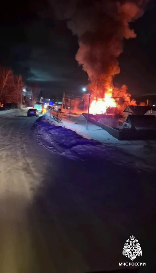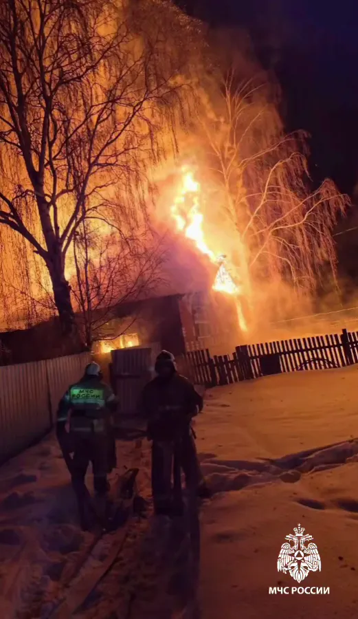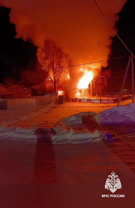 Как сообщили в местном управлении МЧС, сигнал о сильном пожаре в одноэтажном кирпичном доме на Центральной улице поступил в 22:15. Когда пожарные приехали на место, здание было уже полностью охвачено огнём.