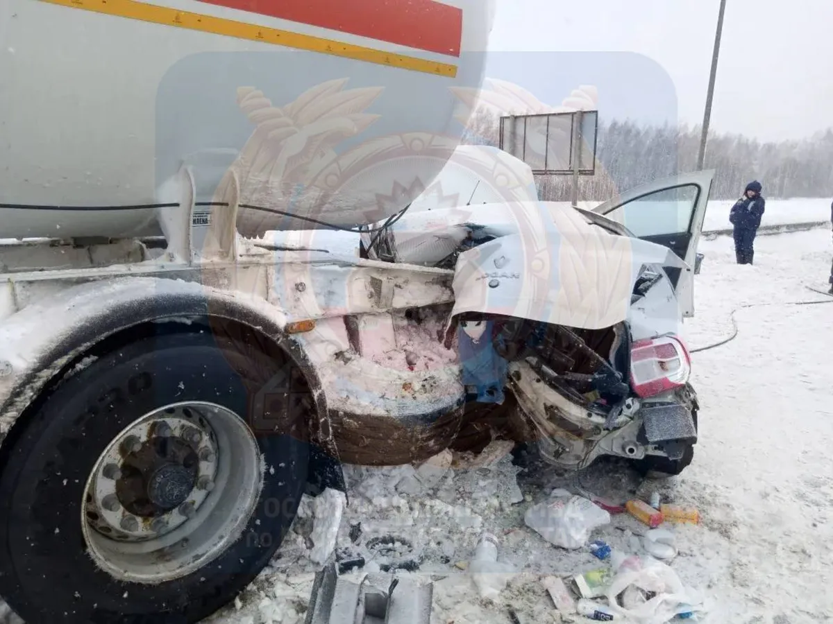 По предварительным данным, водитель автомобиля Renault (1994 года рождения) не выбрал безопасную скорость и дистанцию и совершил наезд на стоящий впереди полуприцеп. Его водитель остановился, чтобы очистить машину от снега.