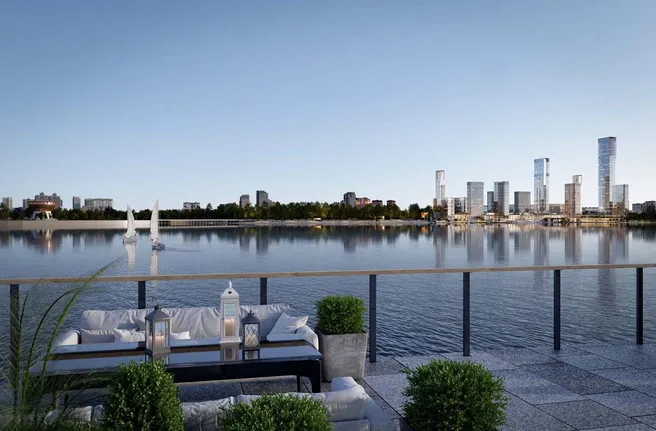 Один из корпусов первой очереди отведут под апартаменты бизнес-класса и детский досуговый центр. Ещё два здания, которые расположатся непосредственно на первой береговой линии, займут премиум-апартаменты, рестораны и кафе.
