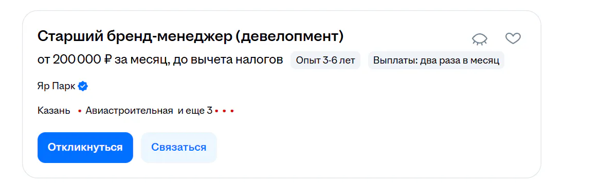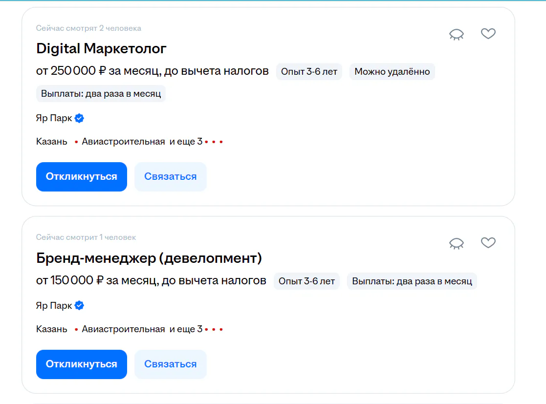 Самая высокооплачиваемая вакансия в казанском офисе — специалист по цифровому маркетингу. Его доход стартует от 250 тысяч рублей. В качестве дополнительных бонусов ему обещают корпоративные скидки.