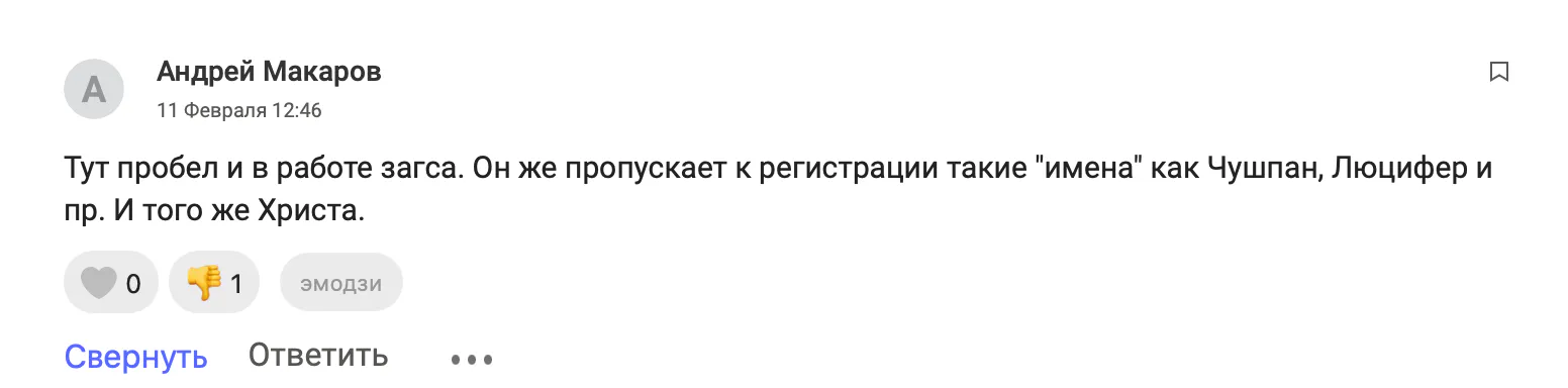 Читатели считают, что в данной ситуации наблюдается пробел в работе ЗАГСа.