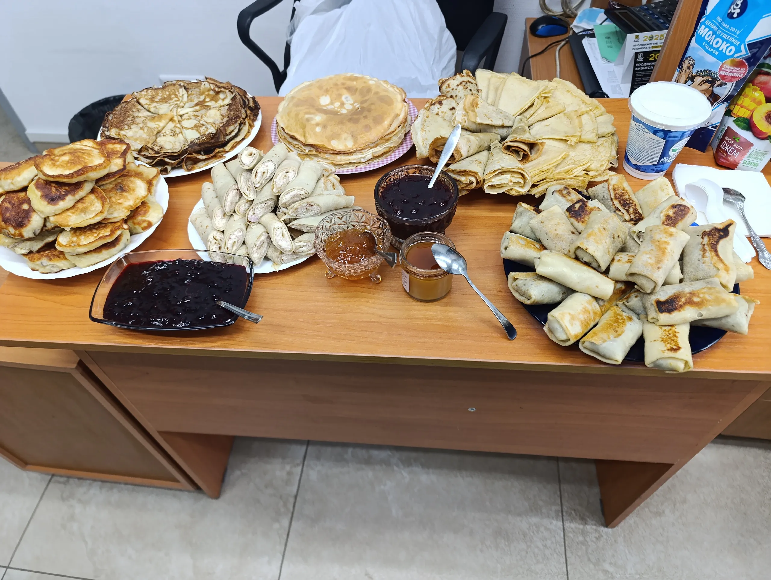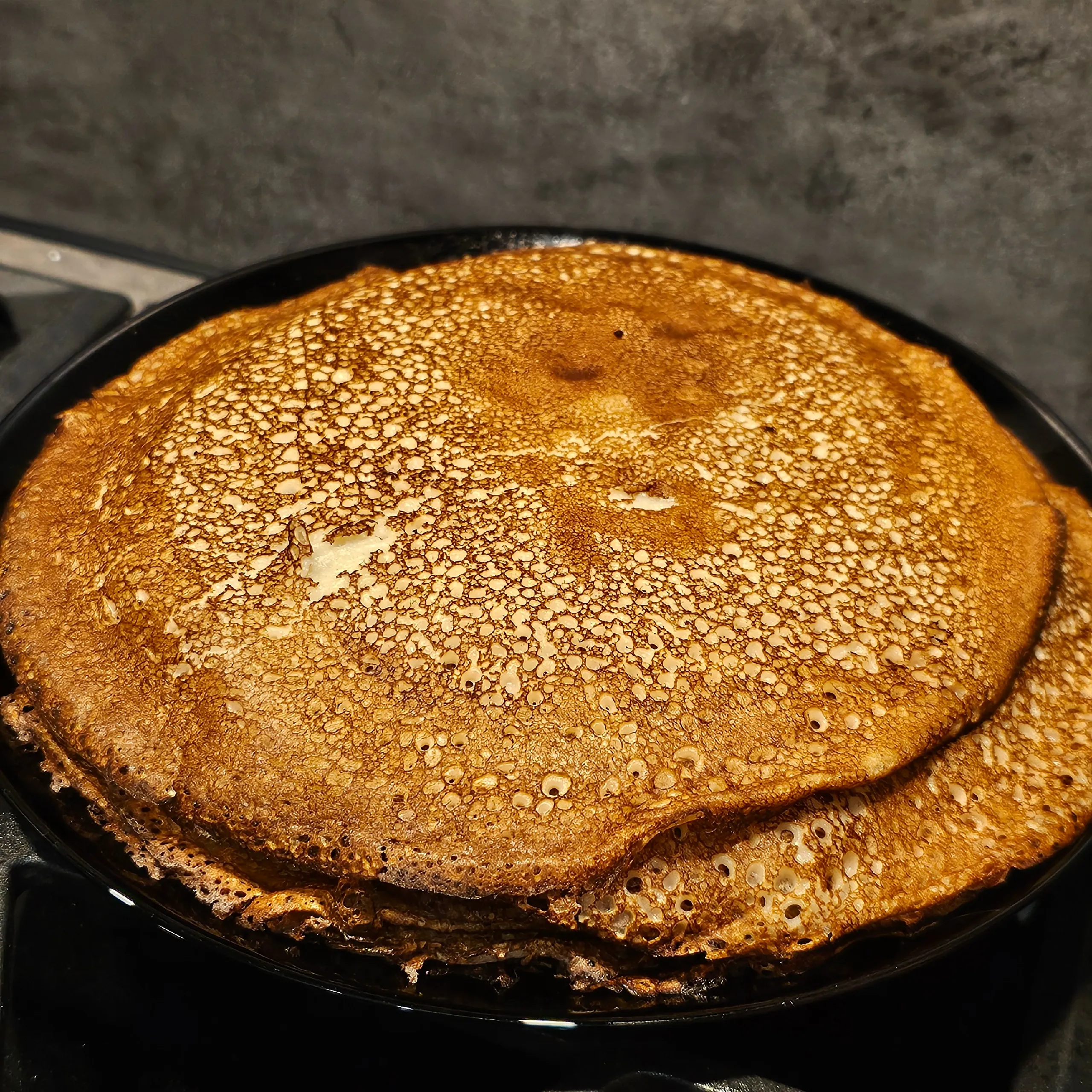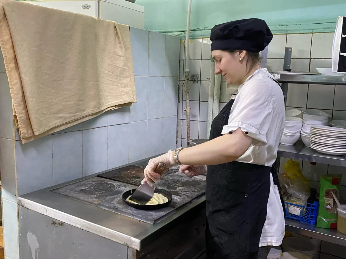 Печь сразу на всех конфорках. В больших татарских семьях блины пекли сразу на нескольких сковородах — иначе не накормить всю родню. Кто-то замешивал тесто, кто-то пёк, кто-то смазывал готовые блины маслом — настоящий семейный конвейер