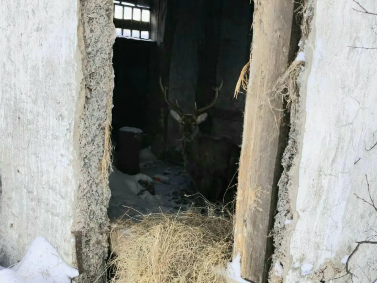 В Татарстане жители спасают дикого марала от голода в заснеженном лесу