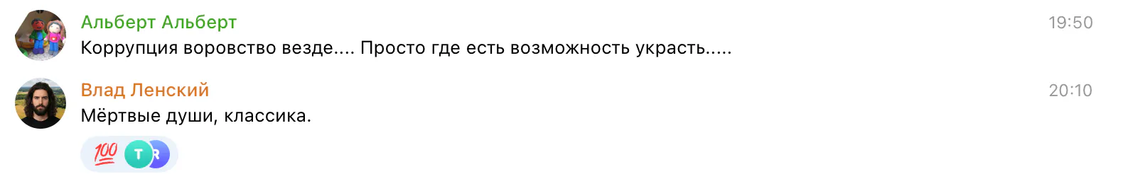 Фото: Скриншот комментариев к посту в телеграм-канале Mash Iptash