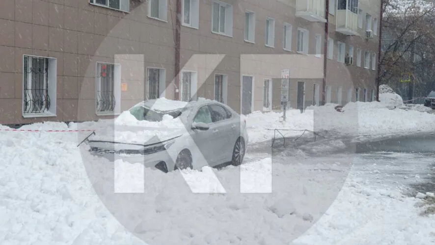 Опасная стоянка: снег с крыши раздавил автомобиль в центре Казани