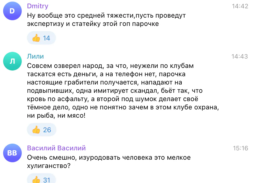 Читатели телеграм-канала возмущены тем, что деяние пары расценили как мелкое хулиганство: