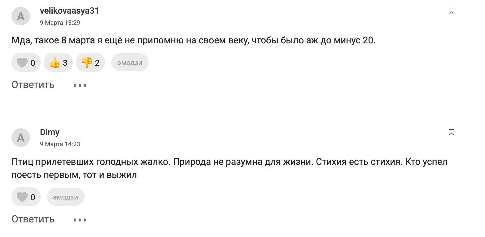 Читатели «БИЗНЕС online» не могут вспомнить, когда такие морозы наблюдали 8 марта: