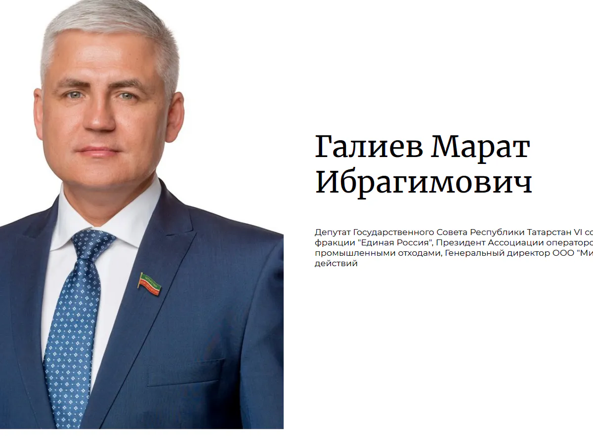 В официальных источниках Галиев выглядит как человек, который прошел путь от помощника машиниста буровой до крупного бизнесмена и политика. С 2019 года он заседает в Госсовете, работает в комитете по экологии и даже удостоен звания «Заслуженный эколог Татарстана». На партийных сайтах его называют борцом за чистоту окружающей среды, который проводит экоуроки в школах.