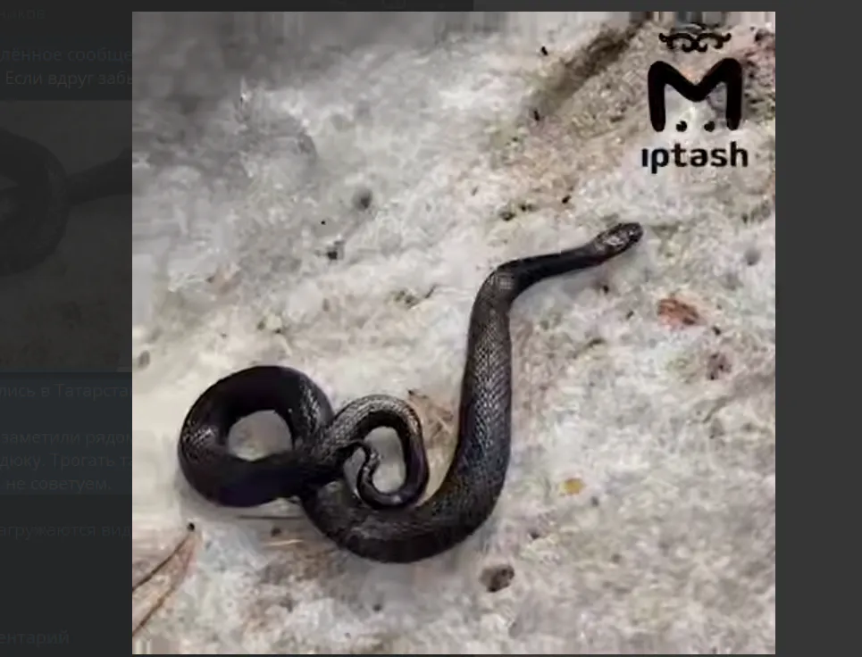 Mash Iptash опубликовал видео от очевидца. На записи видна ползущая змея, похожая на гадюку.