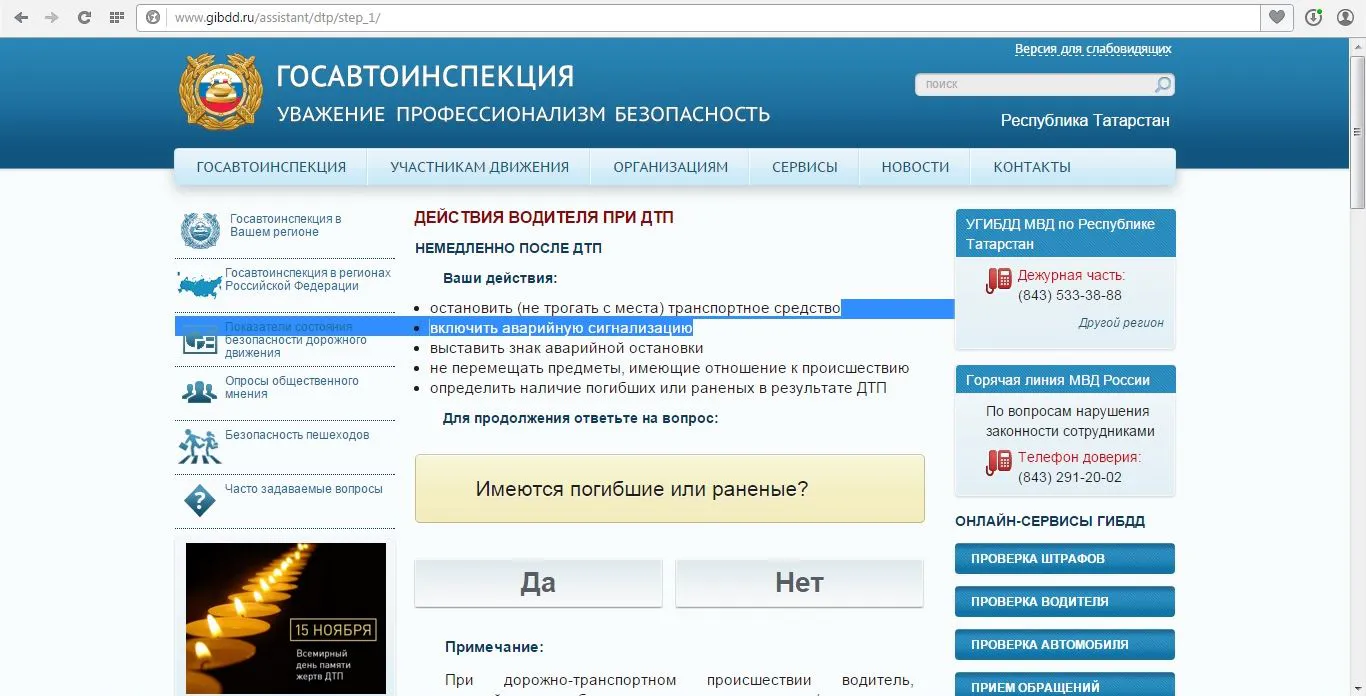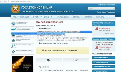 Для помощи водителям – участникам дорожных аварий на официальном сайте инспекции функционирует информационно-справочный ресурс, который в интерактивном режиме предоставляет подробное и поэтапное описание оформления ДТП в зависимости от дорожной ситуации.