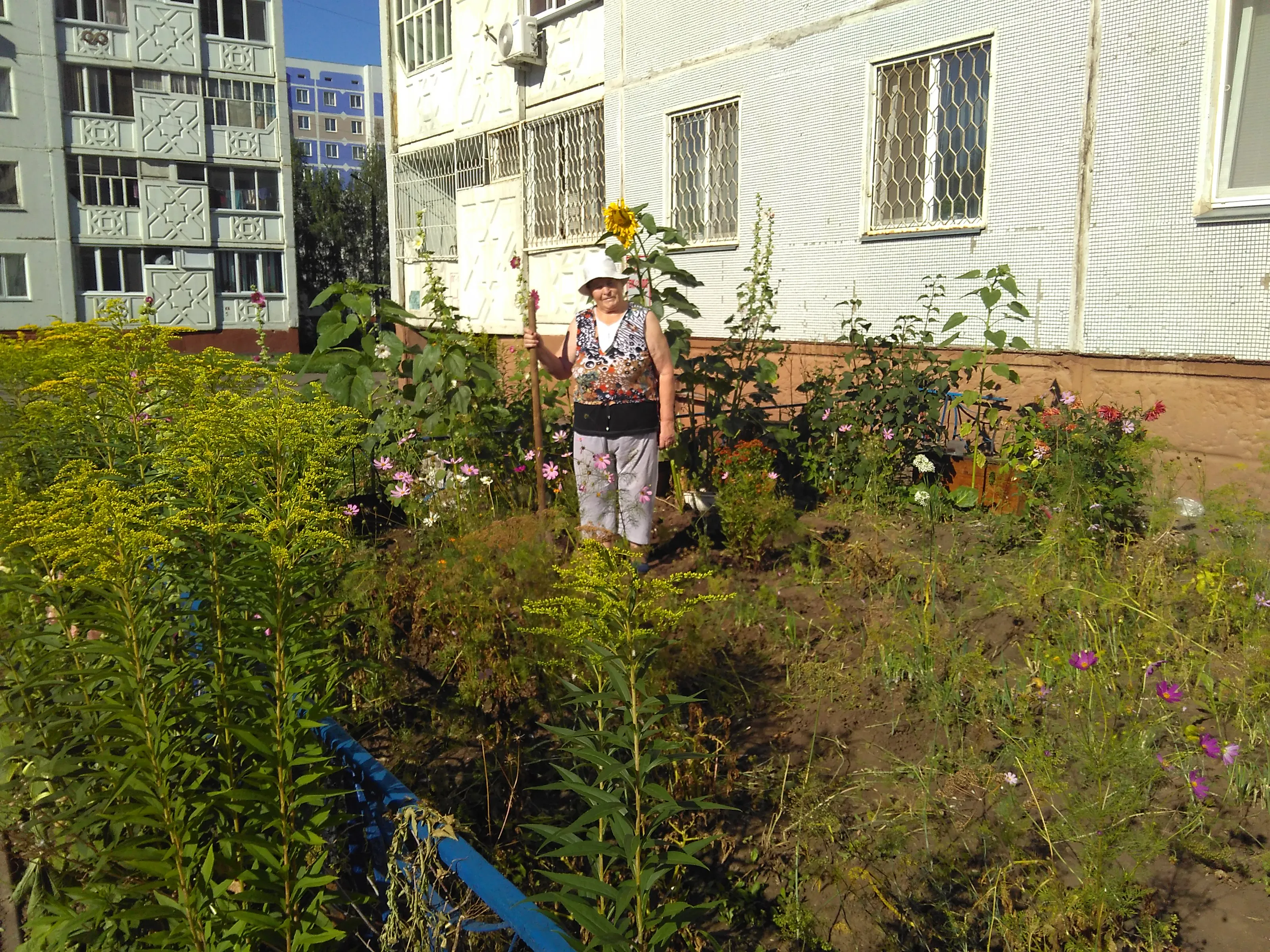 Кстати, ранее небольшой участок земли перед окнами дома она сама отделяла колышками. Но в прошлом году сотрудники домоуправления, к которому относится дом, поставили и покрасили красивый забор.