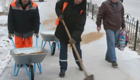 В Нижнекамске тротуары посыпали 32 тоннами песка