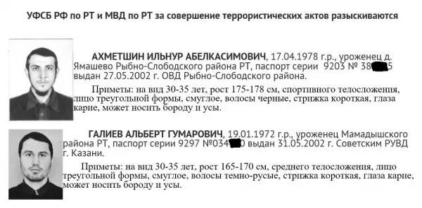 Как сообщает ведомство, в группу входили также жители Татарстана Вильсур Хайруллин, Рауф Зиннуров, Ильнур Ахметшин и снабжавшие группу оружием жители Чеченской Республики Сайд-Мохмад Дангаев и Лема Атуев.