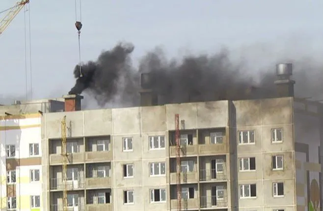 В Нижнекамске у строящегося дома загорелся чердак